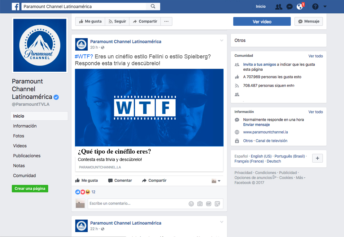 Trivia in the Paramount Channel fanpage where 5 frames of a movie are shown, with different clues. The user will be able to answer which movie they belong to, and according to how many clues they need, they will know their level of movie buff.